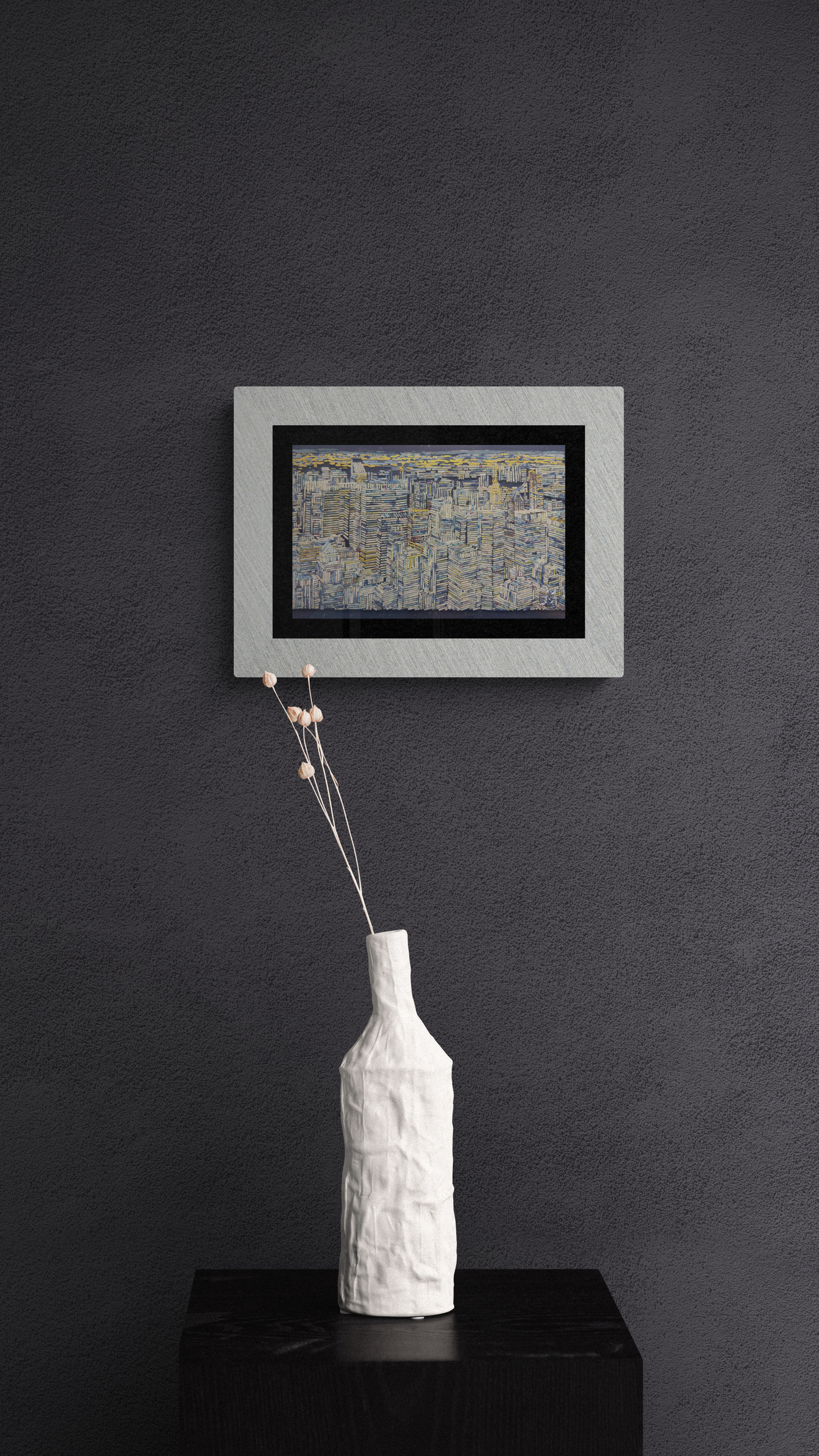 In Empire of Dreams, Manhattan stretches wide beneath the endless sky, its iconic skyline reborn through intricate layers of shredded currency and luminous resin. Seen from high above, New York City reveals itself as a living mosaic — a landscape shaped by ambition, resilience, and countless untold stories. Each fragment of currency, once a fleeting symbol of value, now weaves into the city's eternal spirit, capturing the restless energy that built empires from dreams. In this reimagined view, Manhattan becomes not just a place, but a testament to the daring pursuit of possibility.`