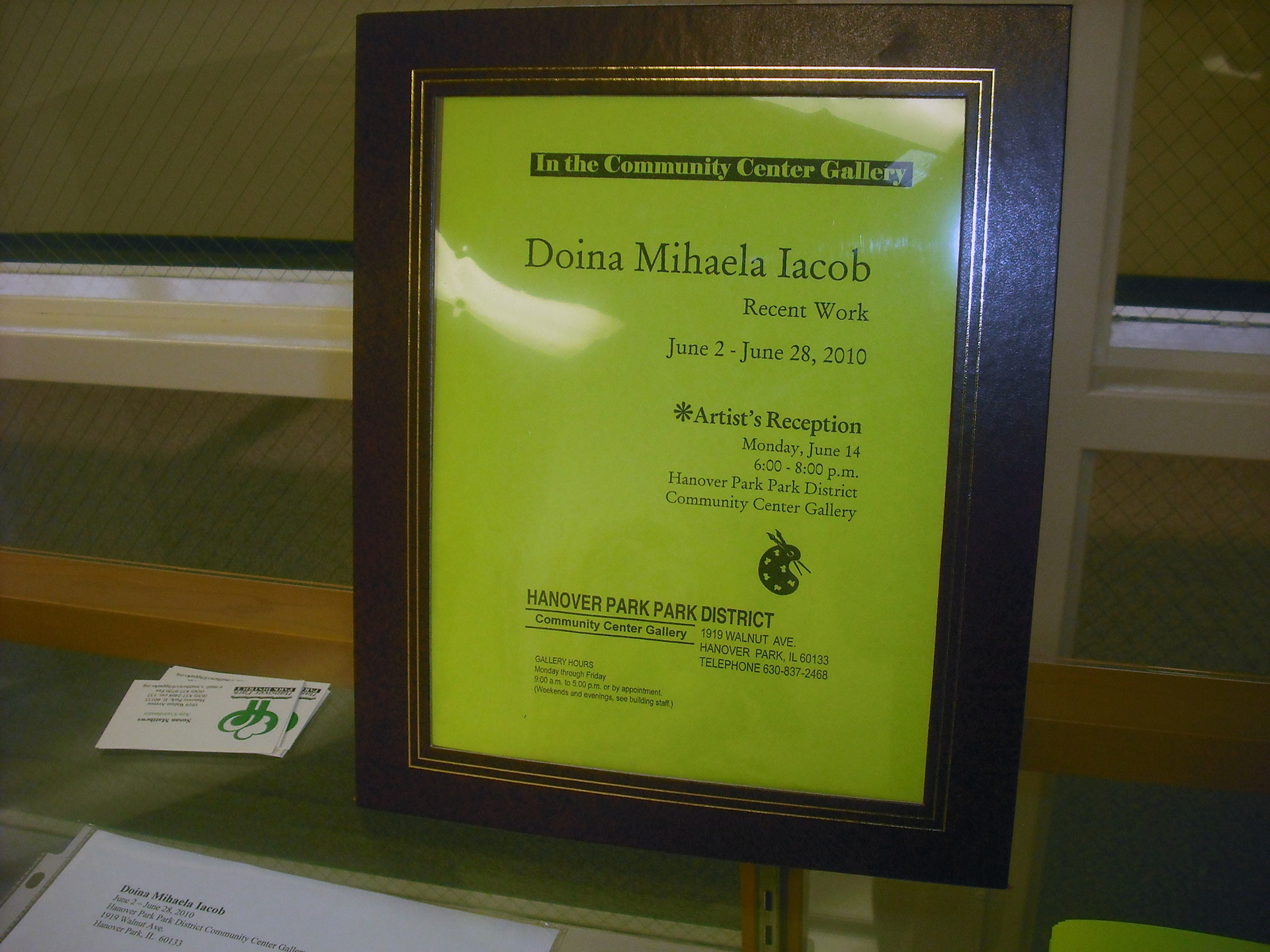 - Solo Exhibit, Hanover Park District Community Center Gallery, June 2010