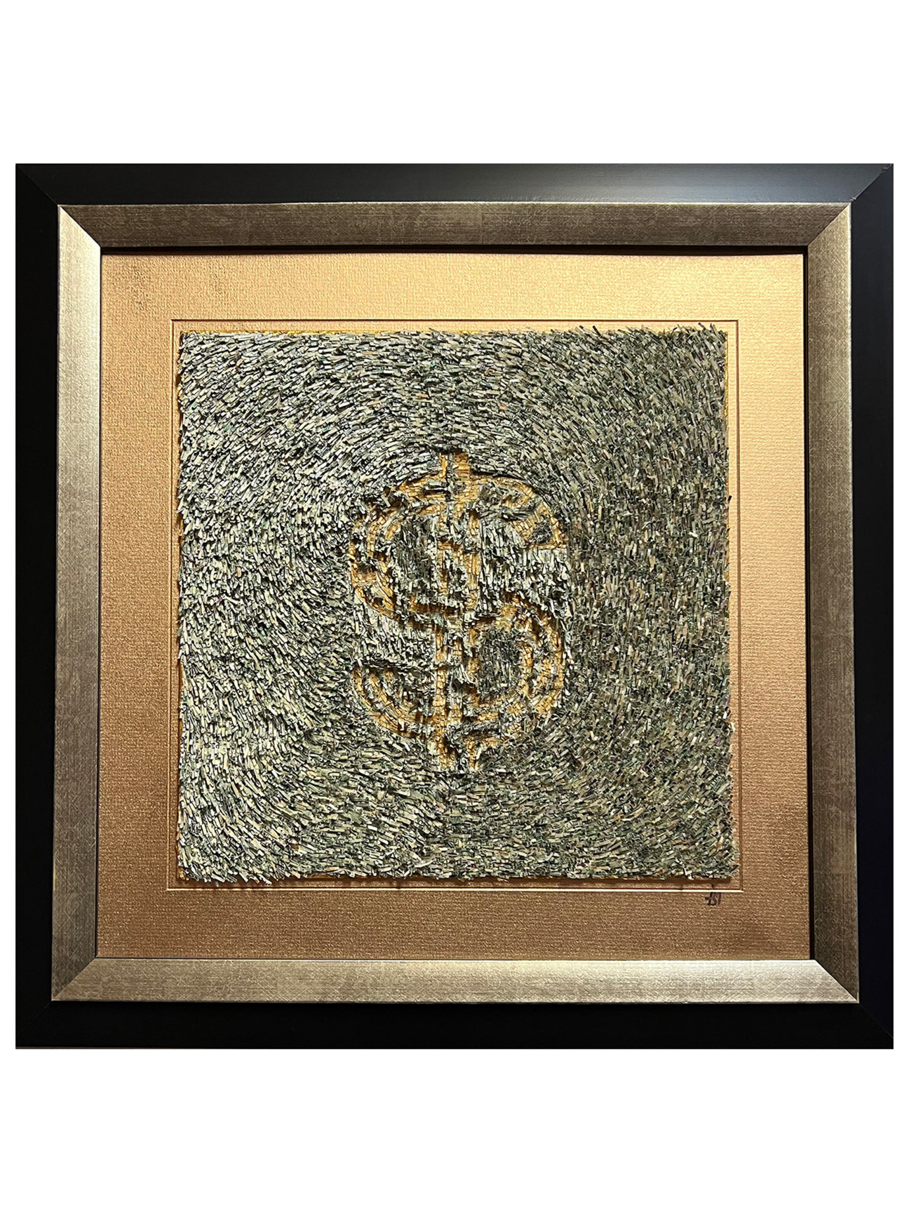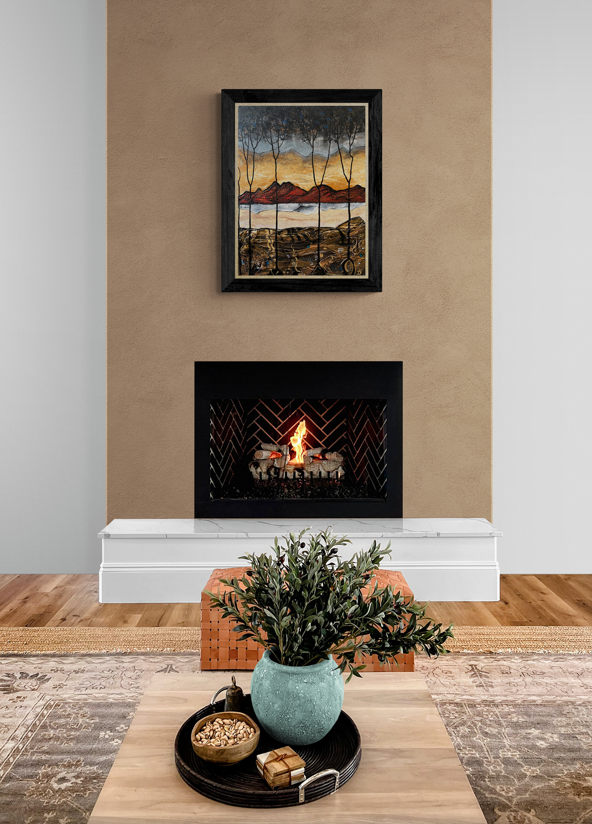 "23- Landscape No.7"- acrylics, gold leaf, textile fibers, paper, painting mediums on a 22"x30"x1" stretched canvas, 2023, framed.