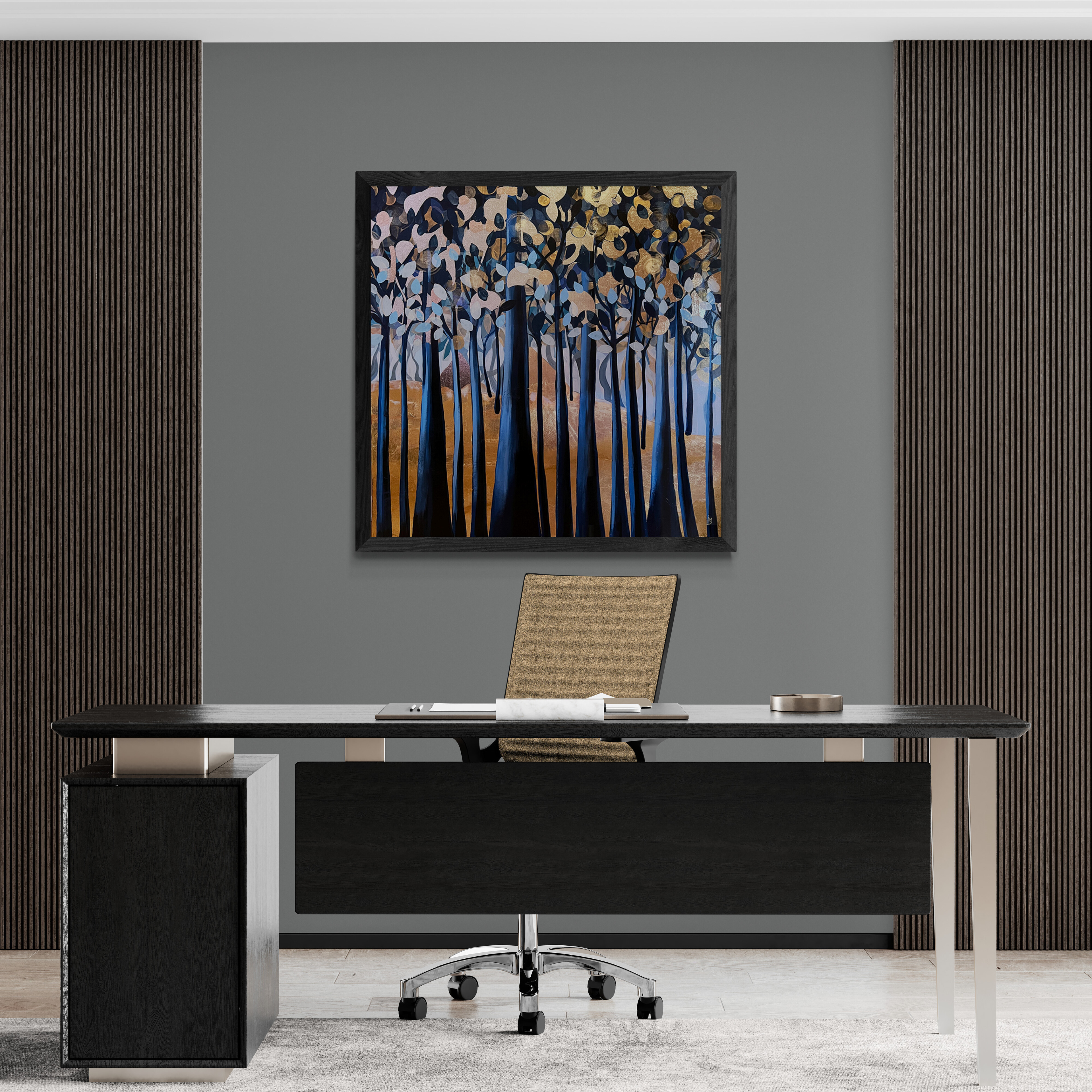 "23- Landscape No.2", acrylics, pencils, permanent marker and 24k gold foil on a 20"x20"x2" stretched canvas, 2023, unframed.